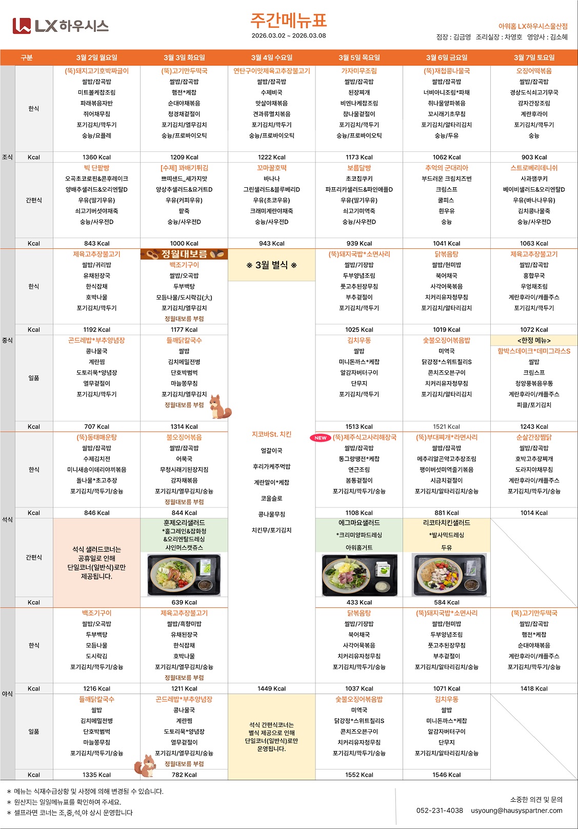 2026.03.02~ 2026.03.08 페이지 정보 작성자 엘지하우시스식단표 댓글 0 조회 97 작성일 26.02.27 본문 . 첨부파일 260302.jpg (505.2K) 목록 Prev2026.03.09~ 2026.03.1526.03.06 Next2026.02.23~ 2026.02.29 26.02.20