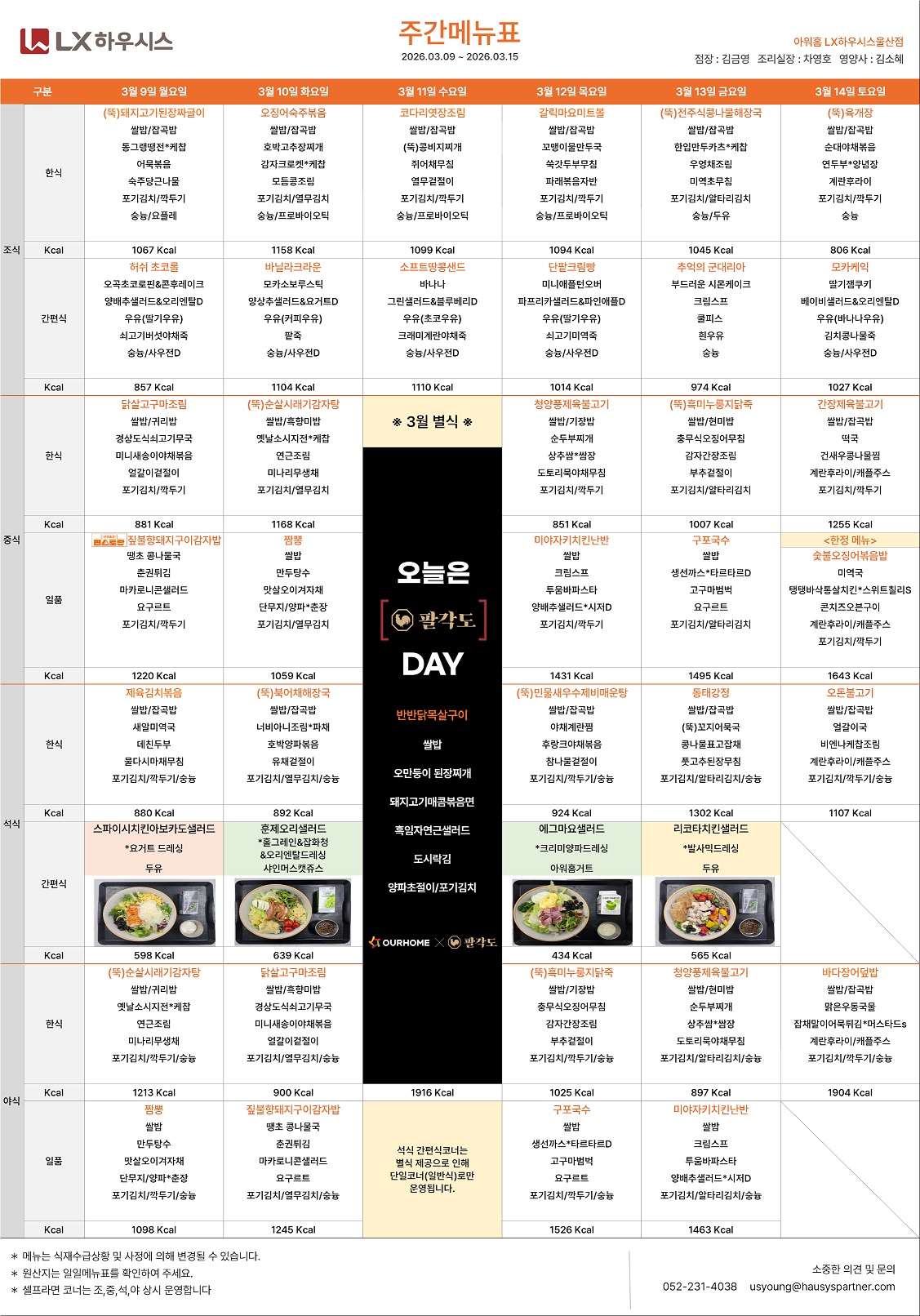 2026.03.09~ 2026.03.15 페이지 정보 작성자 엘지하우시스식단표 댓글 0 조회 94 작성일 26.03.06 본문 . 첨부파일 260309.jpg (516.7K) 목록 Prev2026.03.16~ 2026.03.2226.03.13 Next2026.03.02~ 2026.03.08 26.02.27